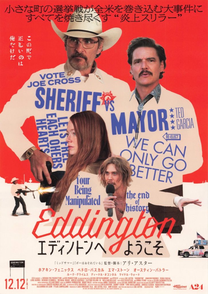 コロナ禍で顕著となったこうした思考様式こそが、今なお続く世界の分断の正体であり、本作はエディントンという小さな町を世界の縮図に見立て、2020年代の狂った世相を容赦なく描き切る。